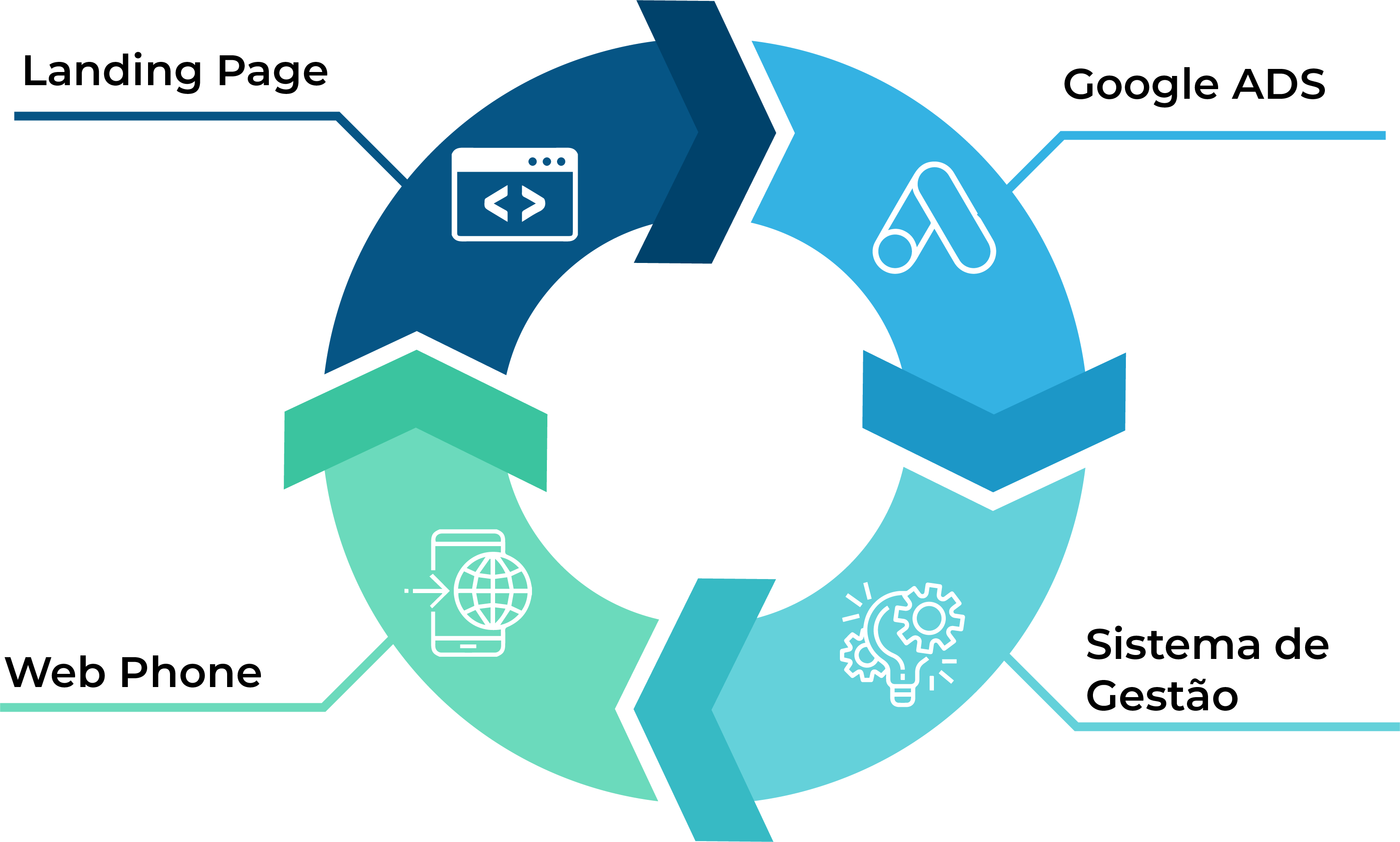 Central de gerenciamento de leads, métricas com foco em resultados e clientes. Gestão de ligações ativas e passivas, formulários e campanhas de mídias digitais.